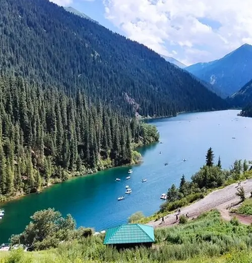 • Arrive at Kolsai Lake, known for its pristine blue waters and surrounded by lush forests